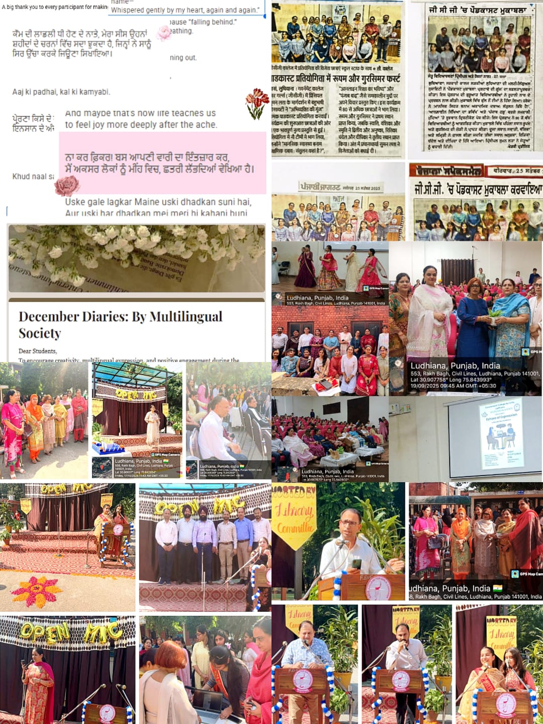 Multi-lingual Society organised an Open Mic Poetry Event on 9th September, 2023. Under the teacher’s guidance, President Ishika Jain organised the entire event in Rusa Seminar Hall and encouraged students to participate. A total of 19 students showed exemplary confidence and charisma, bravely coming up on stage and sharing their beautiful self-written poetries with the enthusiastic audience. This event was conducted with the sole motive of encouraging students and developing confidence in themselves as well as to shine line on the budding poets of GCG. |