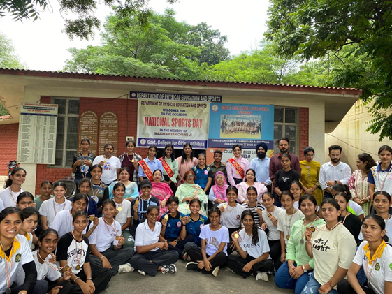 Under the able guidance of Principal Mrs. Suman Lata Ji, the Department of Physical Education and Sports of Government College for Girls, Ludhiana celebrated National Sports Day on 29 August to mark the birth anniversary of hockey legend Major Dhyan Chand Ji. Various events including wrestling, basketball, 100 m race, netball, kabaddi and weight lifting were conducted with great enthusiasm. The winners were awarded medals by Principal Mrs. Suman Lata Ji. The event was graced by Vice Principal ma'am along with the senior staff council, and was successfully organized by the Head of the Physical Education Department, Mrs. Nivedita. |