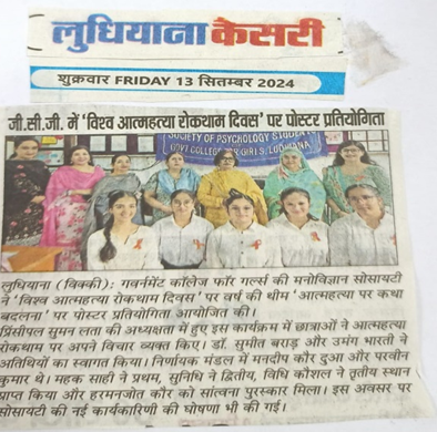 Poster Making Competition on the occasion of World Suicide Prevention Day |