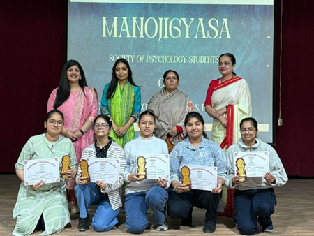 The Office Bearers of Manojigyasa Society (Session 2023-24) were presented certificates and trophies as a token of appreciation for their efforts and hard work by college Principal Mrs. Suman Lata. |